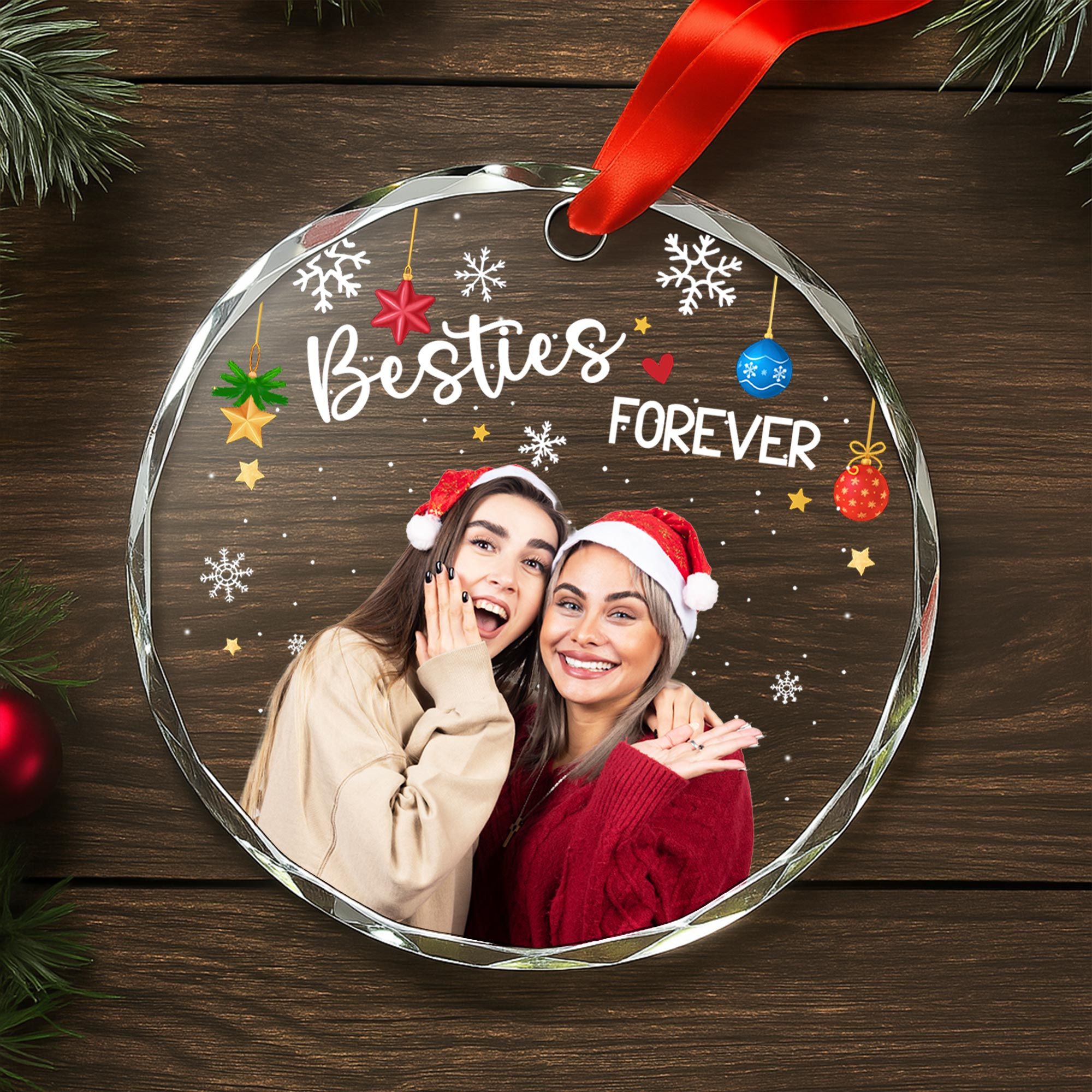 Besties Forever With Santa Hats And Christmas Decorations - Personalized Custom Circle Glass Ornament - BST406_CGOR