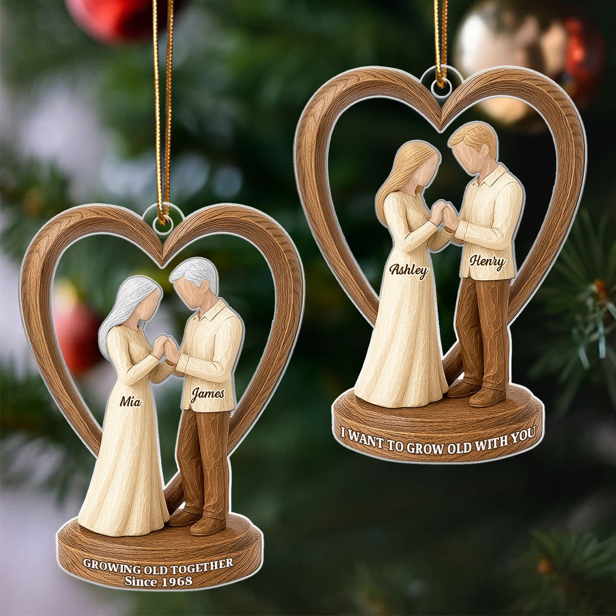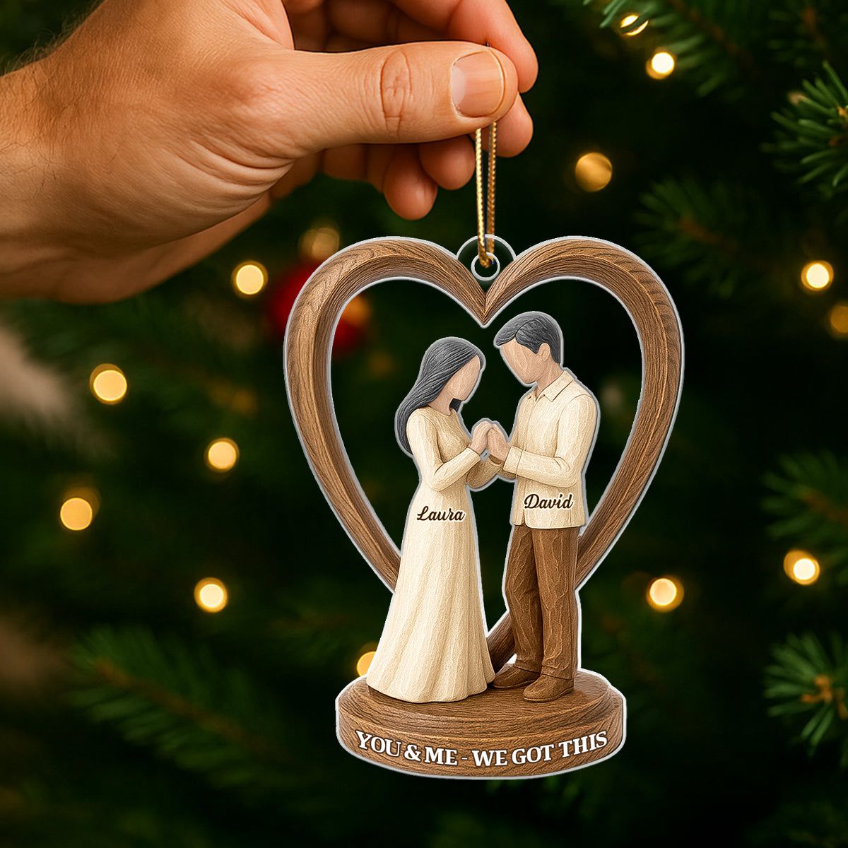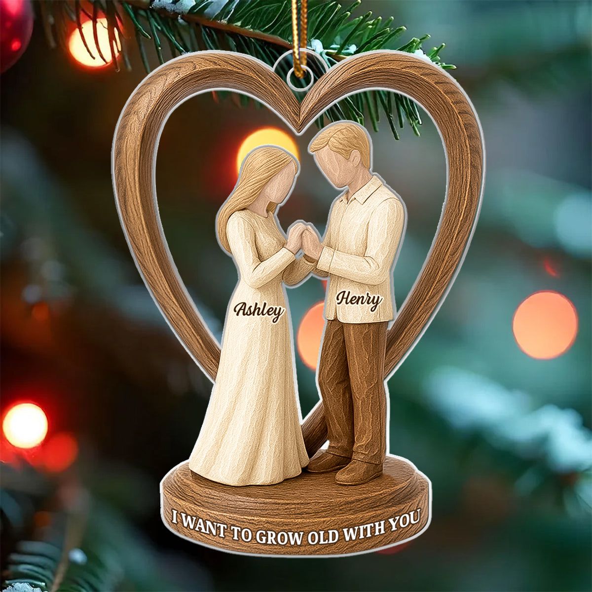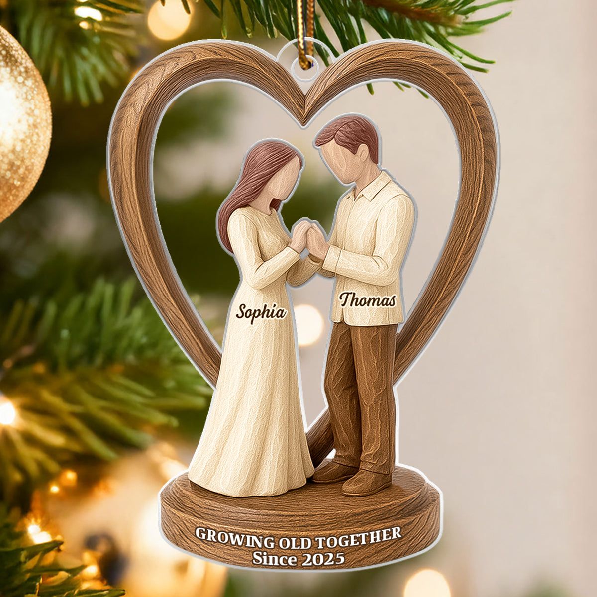Couple Wedding Wooden Figurines - Personalized Acrylic Ornament - Heartwarming Christmas Gift For Him, For Her, For Couple