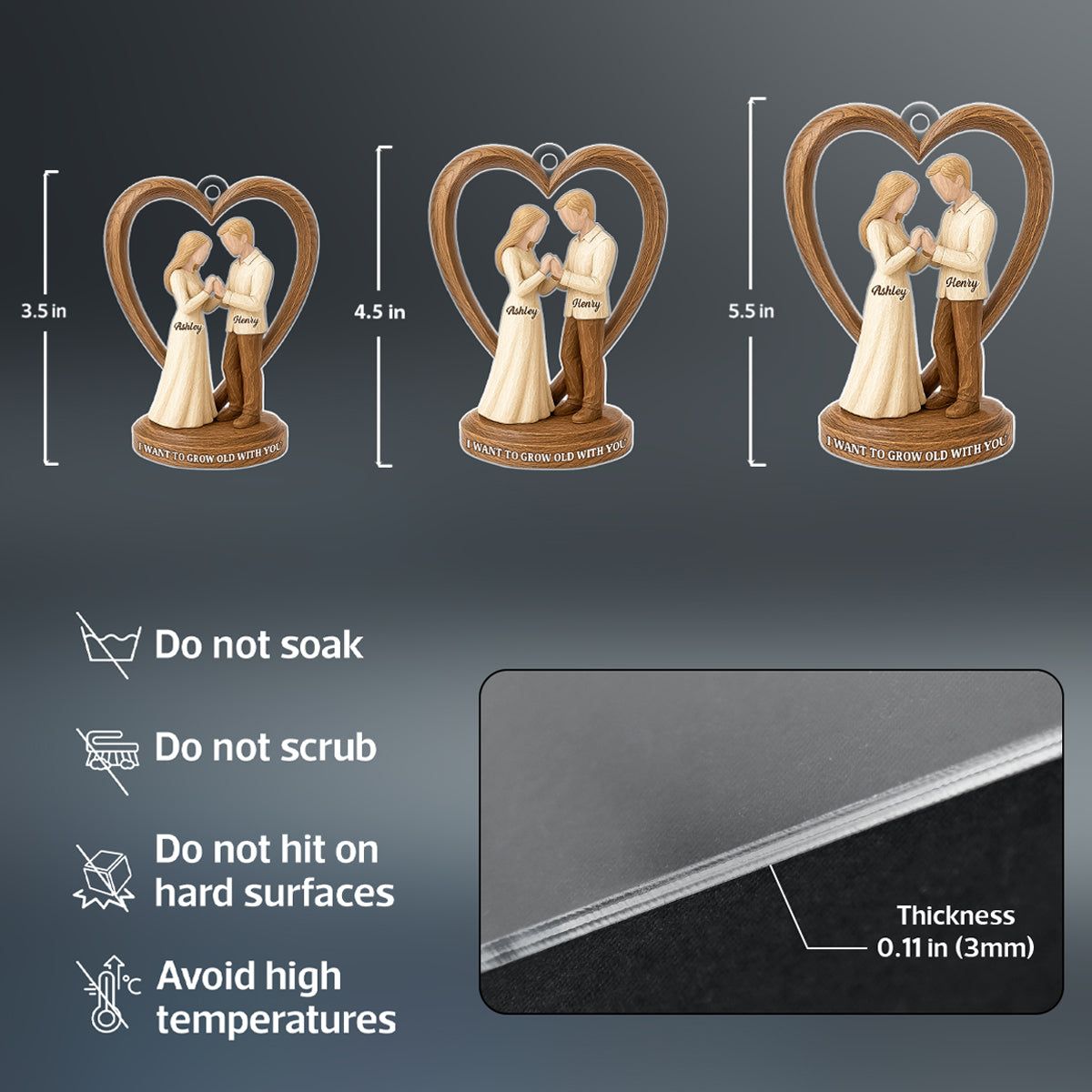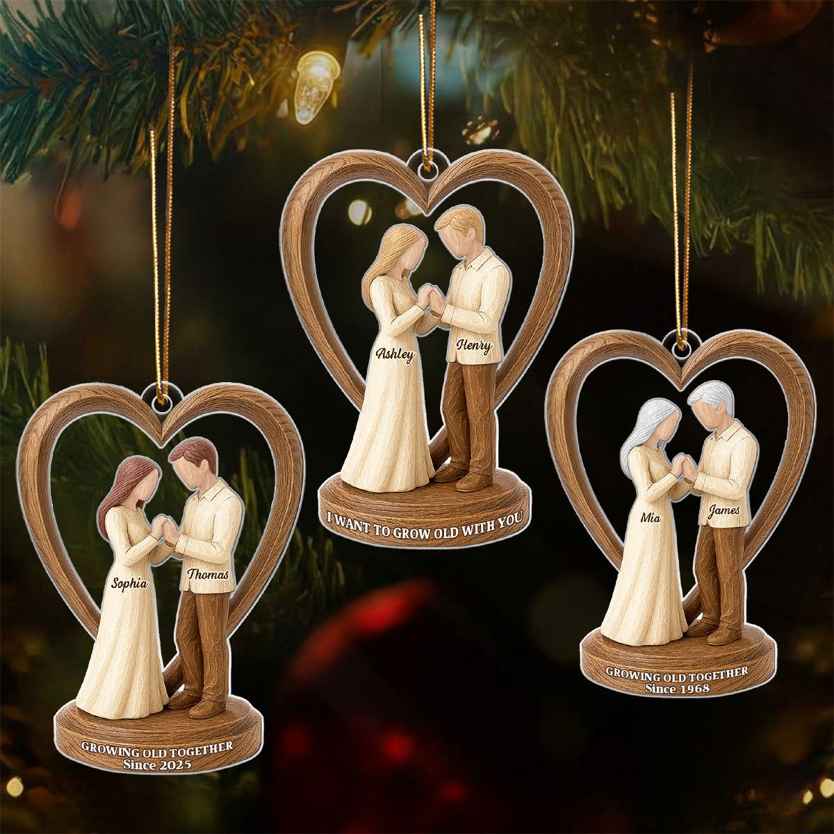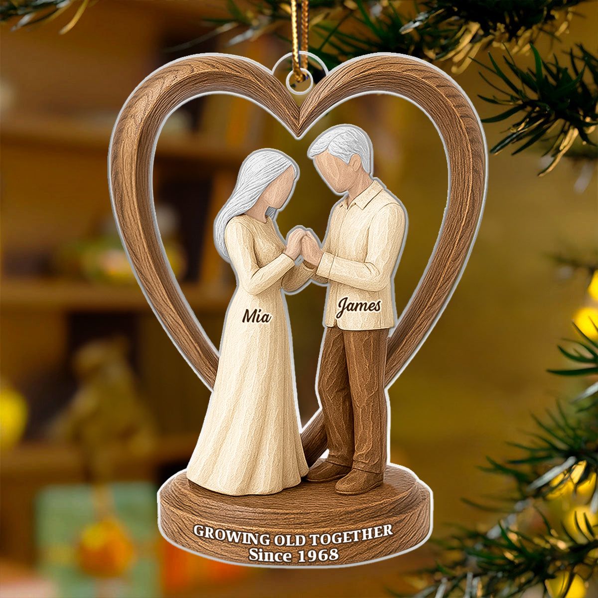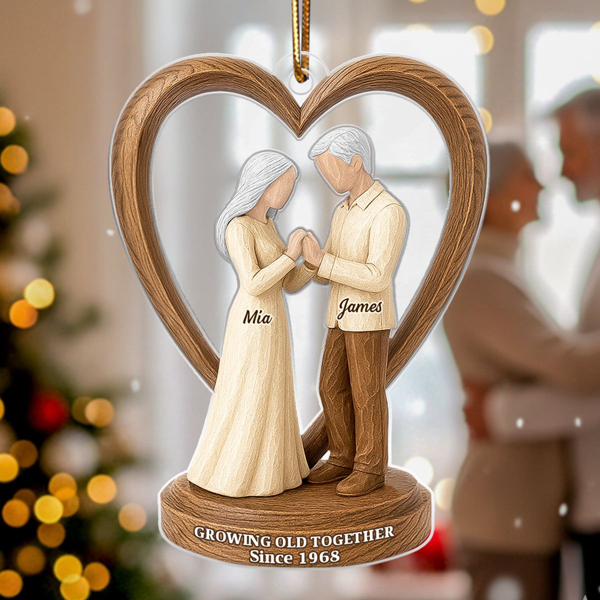 Couple Wedding Wooden Figurines - Personalized Acrylic Ornament - Heartwarming Christmas Gift For Him, For Her, For Couple
