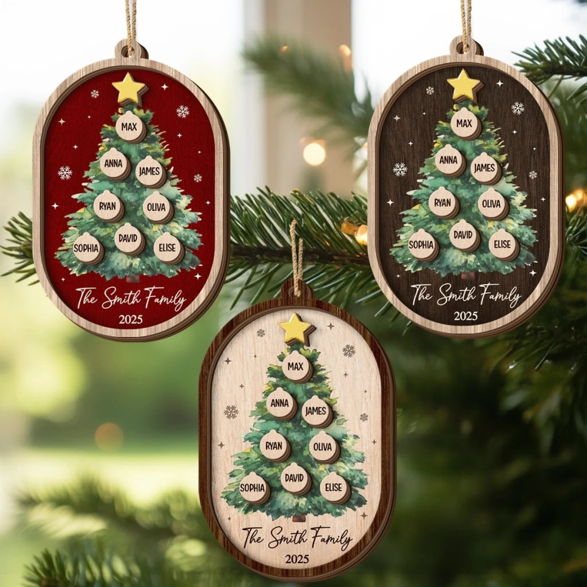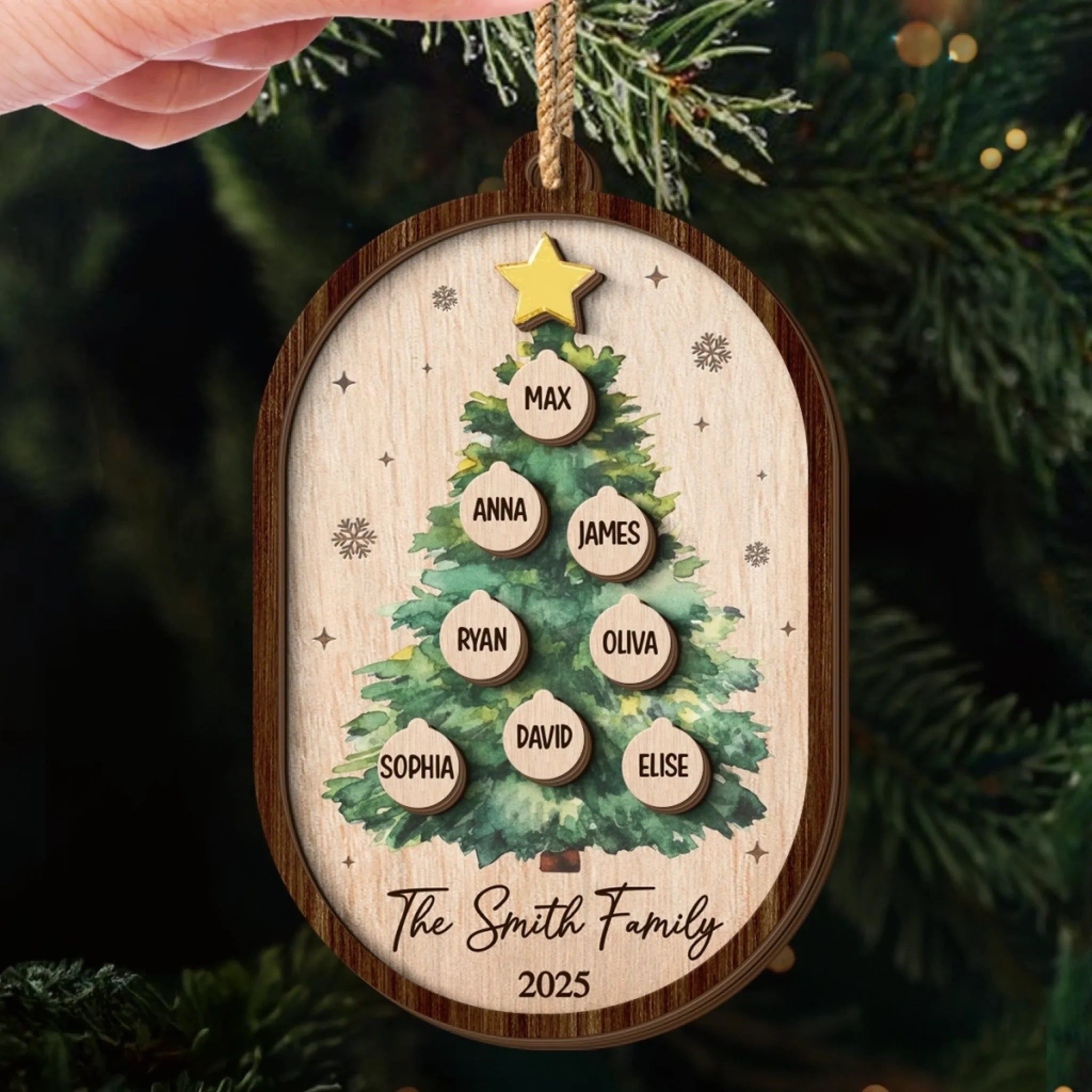 Custom Double Layer Wooden Ornament - Personalized Christmas Birthday Gifts For Mom, Dad, Brother, Sister, Kids - Blessed With Family Love