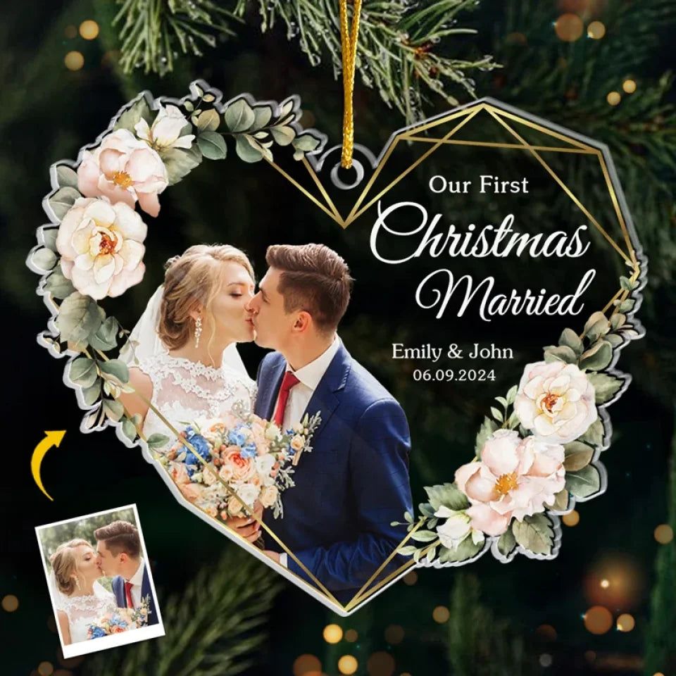 Custom Photo Our Love Makes This First Christmas Unforgettable - Couple Personalized Custom Ornament - Acrylic Custom Shaped - Christmas Gift For Husband Wife, Anniversary, First Christmas