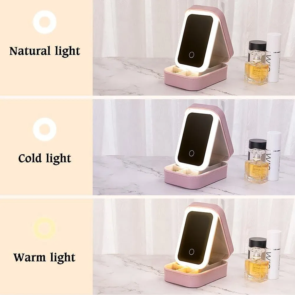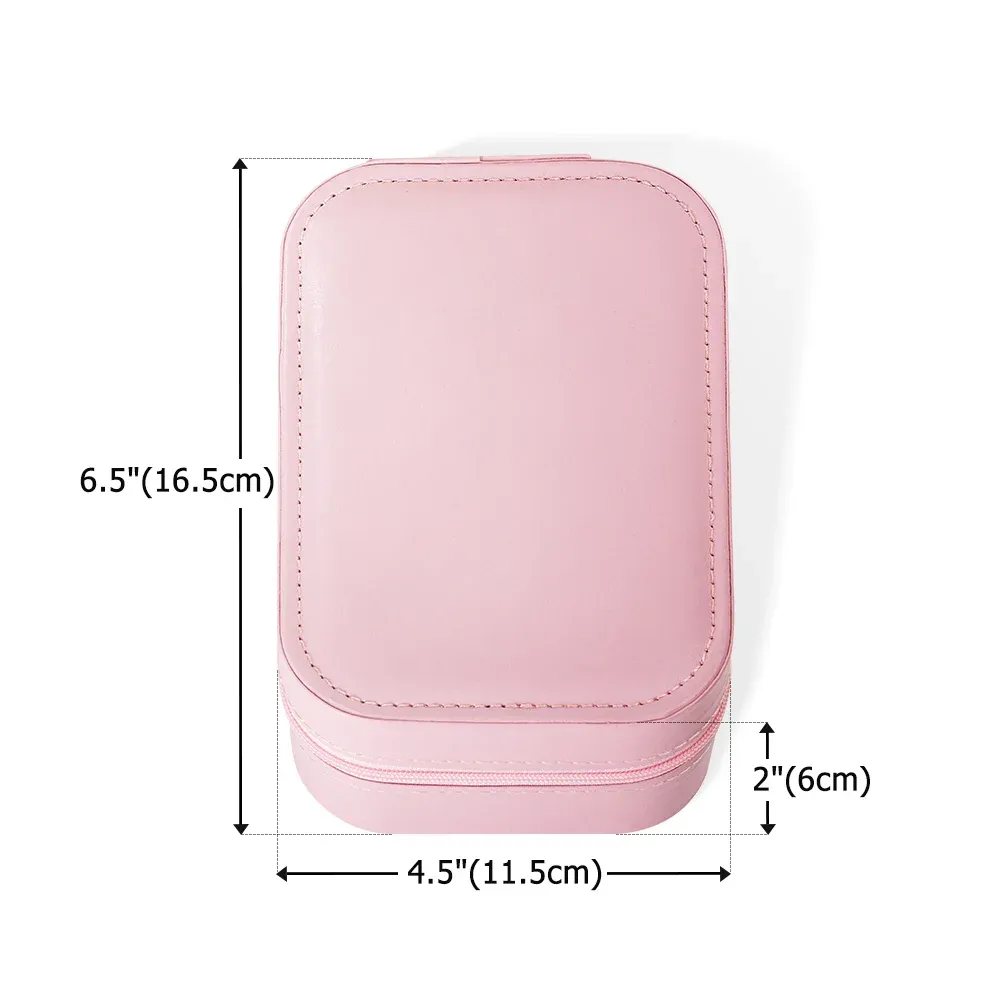 Personalized Birth Flower Portable Leather Travel Jewelry Box with Name and LED Three-color Adjustable Makeup Mirror Birthday Gift for Women