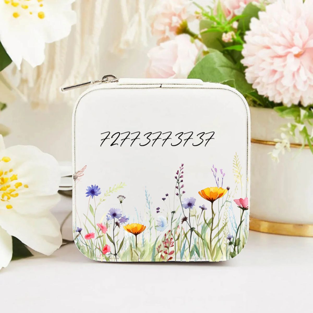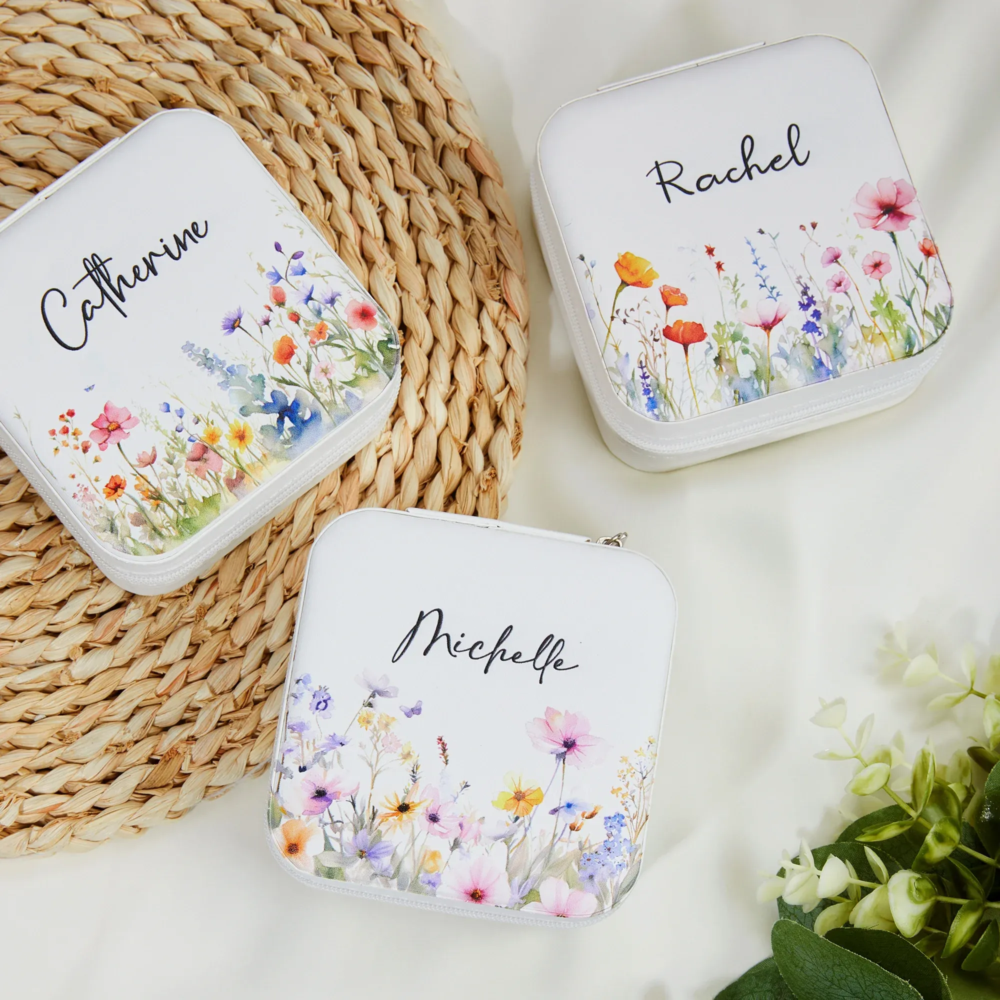 Personalized Floral PU Leather Jewelry Travel Box with Name Portable Jewelry Case Wedding Bridesmaid Birthday Gift for Women